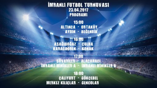 İmranlı Futbol Turnuvasıİmranlı Futbol Turnuvası kapsamında grubumuzdaki son maçımızı Alacahacı Takımı ile yapacağız. ![]() ![]() ![]() Maçımız Can Halı Saha Tesislerinde (Cengizhan Mh. Natoyolu Cd. No:503 Mamak +90 312 391 9499) 23.04.2017 Pazar günü saat 17:00 da. Fikstür ve Puan Tablosu İçin Buraya, Takım Kadromuz için Buraya Tıklayınız. Tüm hemşerilerimizi takımımızı desteklemek için maçımıza bekliyoruz. SİS-DER Yönetim Kurulu |