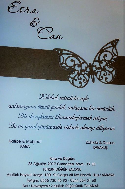 Esra ve Can'ın Düğün Törenleri.SİS-DER Yönetim Kurulu Başkanımız Dursun Karakuş’un oğlu Can Karakuş ile Esra Kara 26.08.2017 Cumartesi günü saat 19:30’da Ankara’da yapılacak düğün törenleriyle dünya evine gireceklerdir. Yer: Tutkun Düğün Salonu Atatürk Heykeli Karşısı 100. Yıl Çarşısı Alt Kat No:2/B Ulus/ANKARA Tüm hemşerilerimiz düğüne davetlidir. Çifte bir ömür boyu mutluluklar dileriz. SİS-DER Yönetim Kurulu |